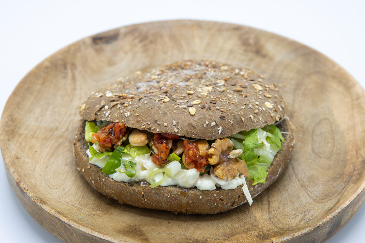 Geitenkaas, nootjes, rozijnen, honing, zongedroogde tomaatjes