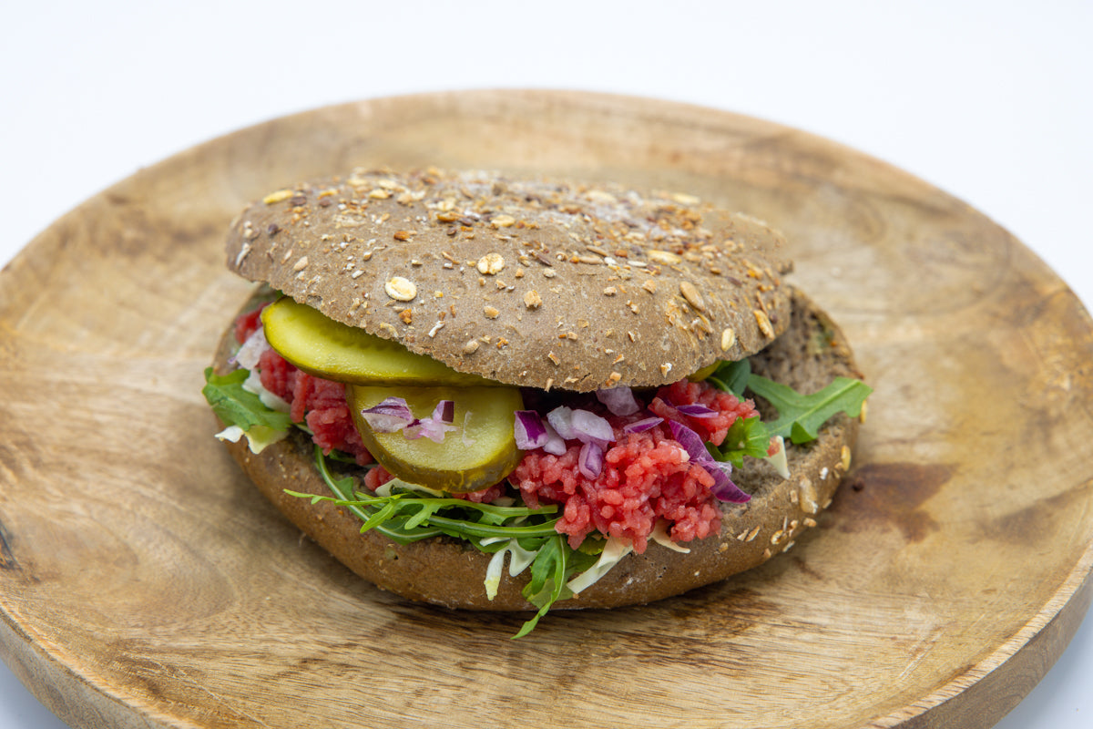 Americain nature, worcestershire saus, rode ui, augurken, sla